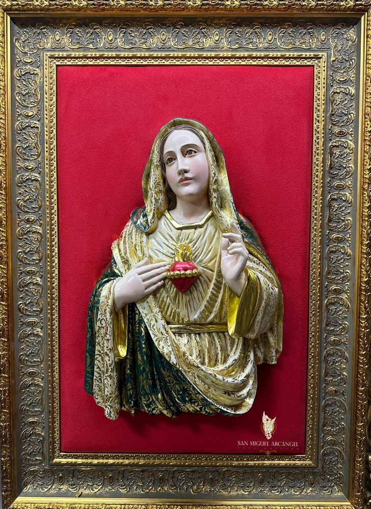 La devoción al Corazón Inmaculado de María exalta su amor y su compasión. El busto y el corazón (frecuentemente representado en el pecho) invitan a la meditación profunda sobre sus virtudes. Esta imagen representa la madre amorosa y protectora, refugio de los pecadores y consuelo de los afligidos.